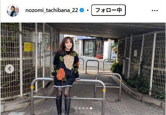 「今日はポカポカ暖かくて、最高のお散歩日和でした」とつづり、ニットのミニワンピースに黒ストッキング&ブーツを合わせたコーデ姿をインスタグラムにアップしたのは女優の立花のぞみ(35)=熊本県出身。