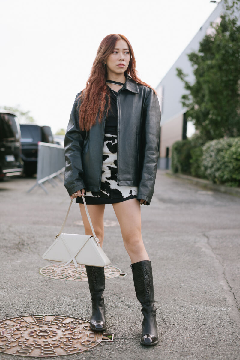 「久々にミニ丈(のボトムスを)着たいからロングブーツと合わせる」